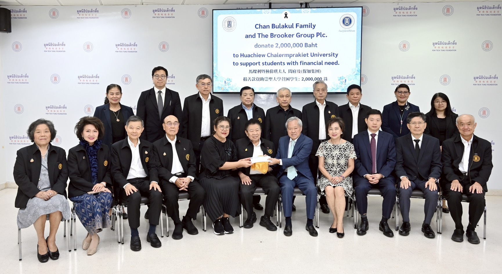 บริษัท บรุ๊คเคอร์ กรุ๊ป จำกัด (มหาชน) ได้บริจาคเงิน 1,000,000 บาท ให้กับโรงเรียนกว่างเจ้า สีลม กรุงเทพมหานคร